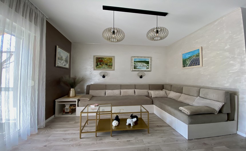A pleasant “Art – peaceful family apartment in Podstrana” for a peaceful and relaxing holidays in Podstrana. This apartment, is located in a small seaside resort Podstrana, just few km from Split. It’s a perfect for families because of the location. Bakery, a grocery and a bus station, as well as the beach in Podstrana are all in the area-just about five minutes walking. There are some nice restaurants in Podstrana nearby. Split (SPU) airport is 21 km far away, shopping centers (City center Split and Mall of Split) are about 5 km far away.