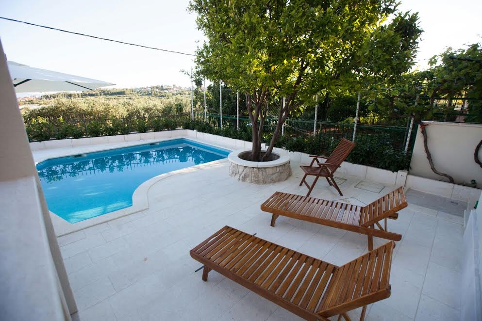 Bright apartment with pool near Split is located in a quiet part of Zrnovnica (Koresnica) with a swimming pool and beautiful surroundings.