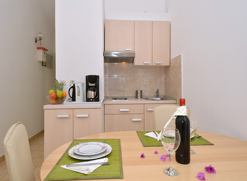 Studios come with a small kitchen with all utensils for basic cooking and eating in. In short, kitchen is basic but adequate.