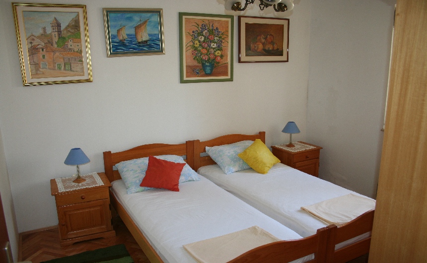 Right in front of Podstrana pebble beach, Nice beachfront apartment in Podstrana has a terrific view on the Brac Channel. The house is literally on the beach, 15 m away from the sea water. Two bedrooms with double beds, together with living room and a bathroom are very convenient space for 4 to 5 people. In addition to apartment, our gusts are free to use private parking and house grill. The kitchen is fully equipped. Besides usual kitchenware it also has an oven.